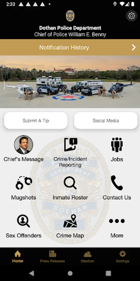 The Dothan Alabama Police Department mobile application is an interactive app which will help improve our communication with the citizens of Dothan and surrounding area. The purpose of this app is to improve our ability to communicate with our citizens Information which will include, but not be limited to Submit a Tip , Crime Reporting, Mugshots and more. Citizens may submit a crime tip directly through the app, as well as see and share social media posts. By empowering people through technology, the Dothan Police Department will be able to better protect our county.