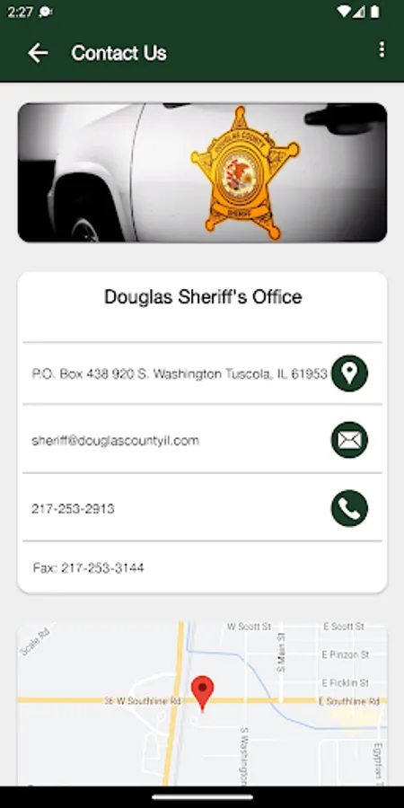The Douglas County Illinois Sheriff’s Office mobile application is an interactive app developed to help improve communication with area residents. The Douglas County Sheriff App allows residents to connect with the Douglas County Sheriff’s Office by reporting crimes, submitting tips, and other interactive features, as well as providing the community the latest public safety news and information.