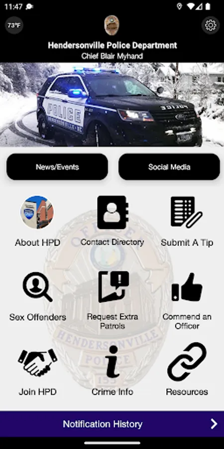 The Hendersonville Police Department NC mobile application is an interactive app which will help improve our communication with the citizens of Hendersonville, NC and the surrounding area. The purpose of this app is to improve our ability to communicate with our citizens with information which will include, but not be limited to contact information, emergency and news alerts, sex offender search and more. Citizens may also submit a crime tip, request extra patrols, commend an officer directly through the app, as well as see and share social media posts. By empowering people through technology, the Hendersonville Police Department will be able to better protect our city.