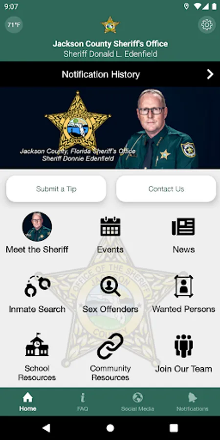 The Jackson County, FL Sheriff's Office (JCSO) mobile application is an interactive app to help improve communication and disseminate timely information to the public. The Jackson County Sheriff App allows the community to connect with the JCSO by reporting crimes, submitting tips, viewing upcoming events, and other interactive features, as well as providing the community the latest public safety news and information. The app is another public outreach effort developed by the JCSO to best serve the community as well as visitors. The app is available to anyone seeking to be in continuous connection with the JCSO and is ideal for all residents, and is especially useful to parents of school-aged children. This app is not intended to be used to report emergency situations. Please call 911 in an emergency.