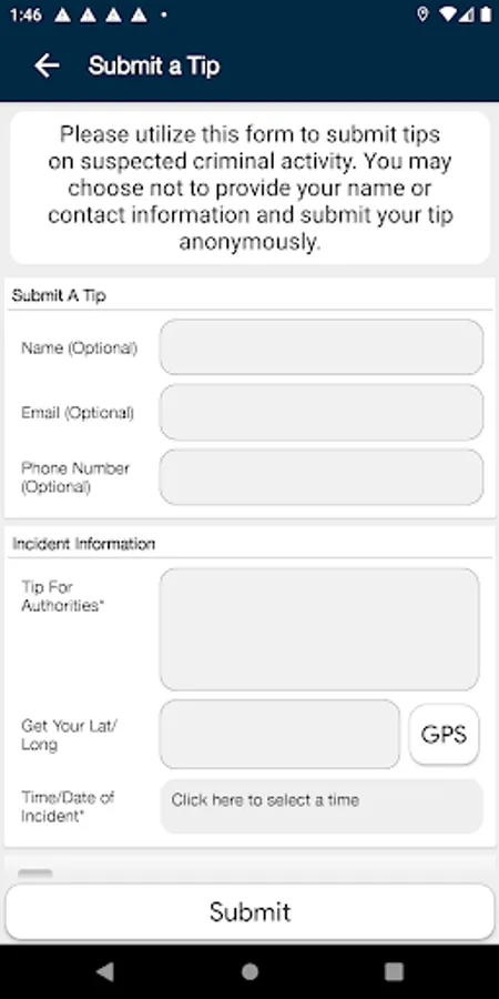 This app is not intended to be used to report emergency situations. Please call 911 in an emergency.