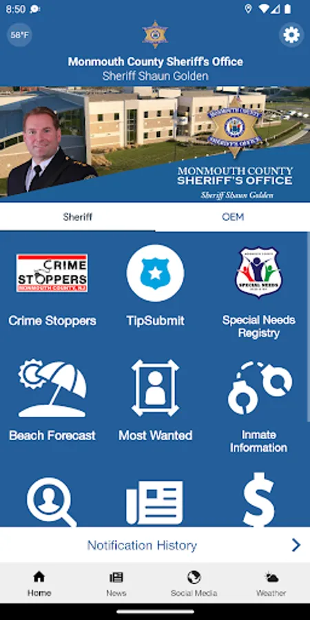 The Monmouth County Sheriff’s Office Application is an interactive application that will facilitate information to the general public in real-time. Such information will include, but not limited to contact information, news alerts, emergency alerts, local weather, event calendar, inmate search, Sheriff Sales and most wanted. By empowering people through technology, the Monmouth County Sheriff’s Office will be able to better protect our county.