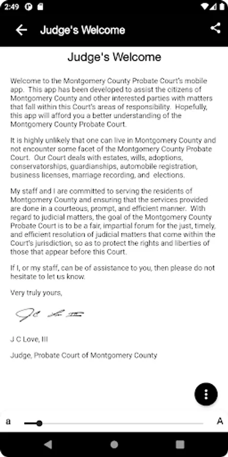 Welcome to the Montgomery County Probate Court’s mobile application. This interactive mobile app was developed to enhance our ability to communicate the various services that are within the citizens of Montgomery County’s fingertips. Such services featured include, but not limited to, Probate Court Filings, Driver’s License and Motor Vehicle Tags and Registration line wait times, Elections/Voter Information, and much more. Our goal is to continue to use technology to deliver superior customer service to the citizens of Montgomery County promptly and efficiently.