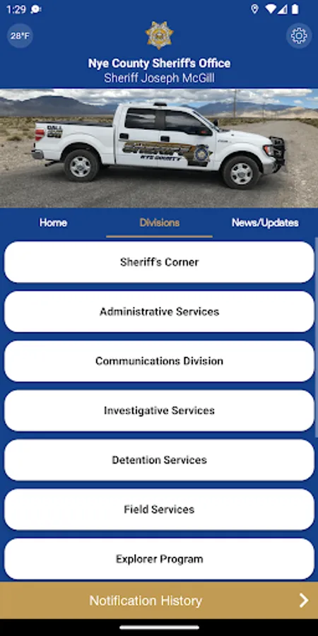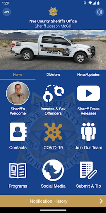 The Nye County Sheriff’s Office mobile application is an interactive app developed to help improve communication with area residents. The Nye County Sheriff’s Office App allows residents to connect with the Nye County Sheriff’s Office by reporting crimes, submitting tips, and other interactive features, as well as providing the community the latest public safety news and information.