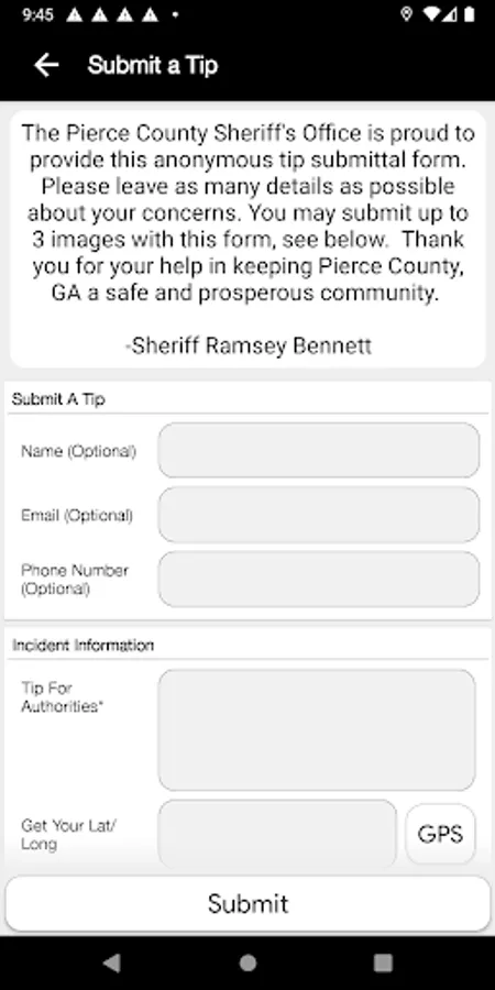 The Pierce County Sheriff’s Office mobile application is an interactive app developed to help improve communication with area residents. The Pierce County Sheriff App allows residents to connect with the Pierce County Sheriff’s Office by reporting crimes, submitting tips, and other interactive features, as well as providing the community the latest public safety news and information. The app is another public outreach effort developed by the Pierce County Sheriff’s Office to improve communication with county residents and visitors. This app is not intended to be used to report emergency situations. Please call 911 in an emergency.