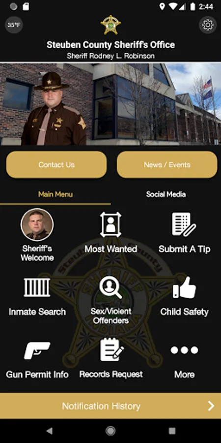 The Steuben County Sheriff’s Office mobile application is an interactive app developed to help improve communication with area residents. The Steuben County Sheriff App allows residents to connect with the Steuben County Sheriff’s Office by reporting crimes, submitting tips, and other interactive features such as Jail Inmate and Sex Offender searches, as well as providing the community the latest public safety news and information. The app is another public outreach effort developed by the Steuben County Sheriff’s Office to improve communication with county residents and visitors.