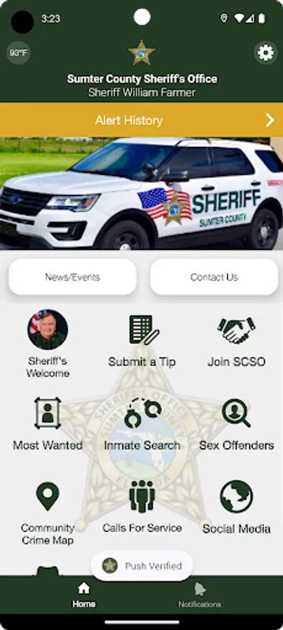improve our communication with Sumter County residents, businesses, and visitors. Information includes sheriff's office contact information, news, emergency alerts, local weather, inmate search, sex offenders, and Most Wanted. Citizens may Submit a Tip (including photos) directly through the app. See and share social media posts. The Sumter County Sheriff’s Office will use this app to alert, inform, and engage the public as our partners in public safety of our county.