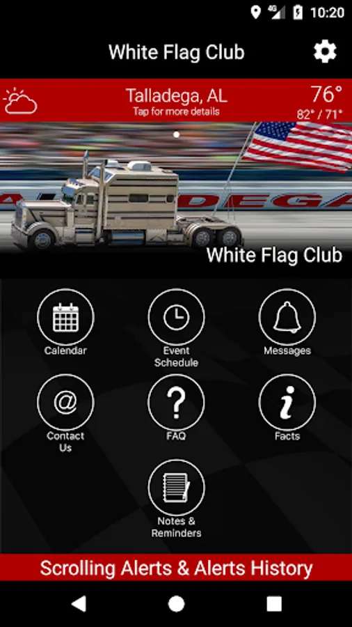 The White Flag Club is a Volunteer Group associated with the Talladega Superspeedway. Volunteers assist the track throughout the year but primarily during race events. This app is for members and track employees to keep up with each other and to have access to important contacts throughout the race week. A password is required and can be obtained from the Club President.