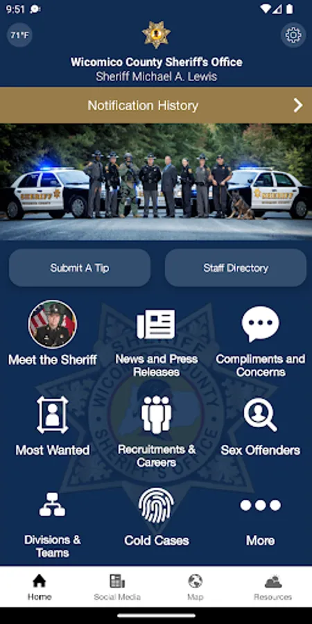 The Wicomico County MD Sheriff’s Office mobile application is an interactive app developed to help improve communication with area residents, businesses, and visitors. The app provides the community with the latest alerts, news, information, and resources. App users can submit crime and drug tips. search for sex offenders in Wicomico County and search for inmates.