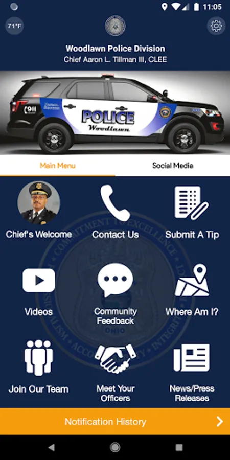 The Woodlawn Police Division mobile application is an interactive app designed to enhance our communication with the public. This app will assist in timely communications with our citizens and offer features that reduce communication barriers. Citizens may submit a crime tip directly through the app, as well as see and share social media posts. By empowering people through technology, the Woodlawn Police Division will be able to achieve our goal of effective and efficient operations. This app is not meant to be used to report emergency situations. If you have an emergency please call 911.