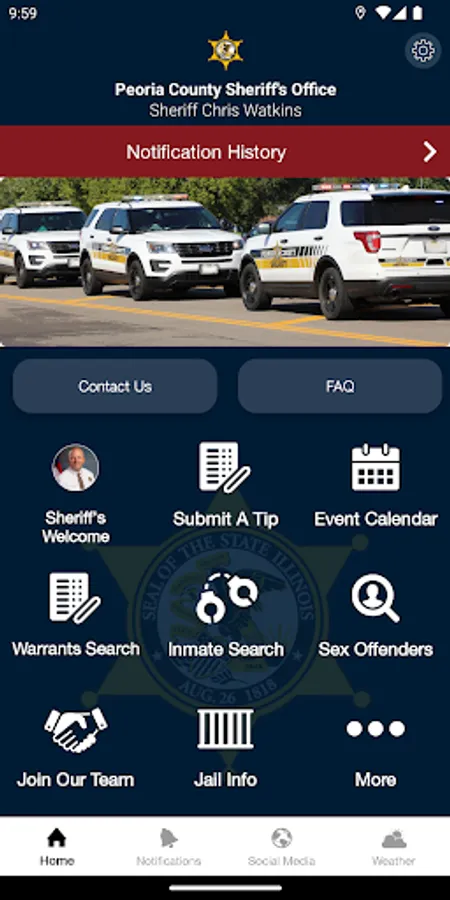The Peoria County Sheriff’s Office mobile application is an interactive app developed to help improve communication with area residents. The Peoria County IL Sheriff’s app allows residents to connect with the Peoria County Sheriff’s Office by reporting crimes, submitting tips, and other interactive features, as well as provides the community the latest public safety news and information. The app is another public outreach effort developed by the Peoria County IL Sheriff’s Office to improve communication with county residents and visitors. This app is not intended to be used to report emergency situation. Please call 911 in an emergency.