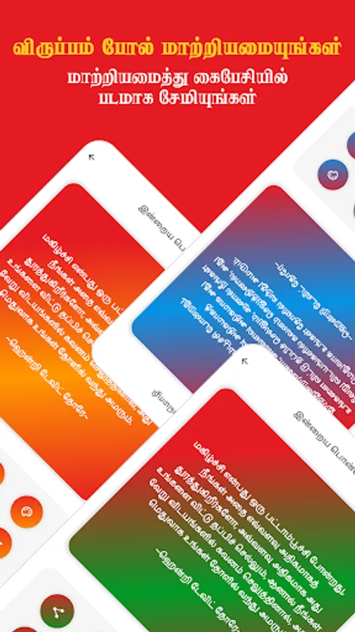in this quotes app you can customize the colors, text size, font and you can save the quotes to your gallery or you can share your customized quotes with your friends.