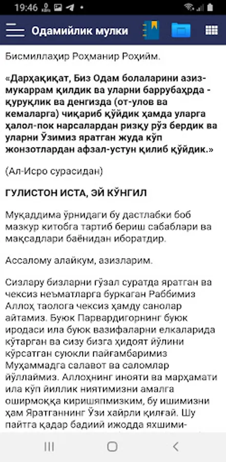 suyukli payg‘ambarimiz Muhammadga salavot va salomlar yo‘llaymiz. Allohning inoyati va marhamati ila ko‘p