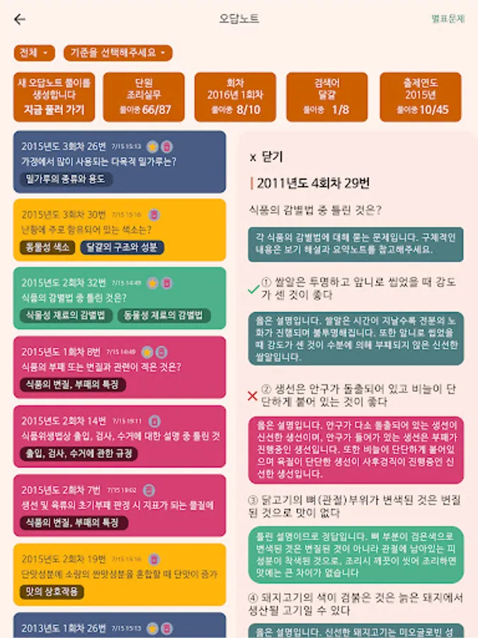 3. Incorrect answer notes and notepad Wrong answers are collected separately and provide an incorrect answer note solving function so that you can solve them over and over again. Important issues can be managed by adding your own memorized notes after asterisks.