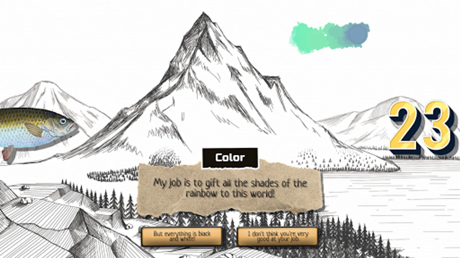 An entity responsible for all the color in the world. In an almost completely black and white game.