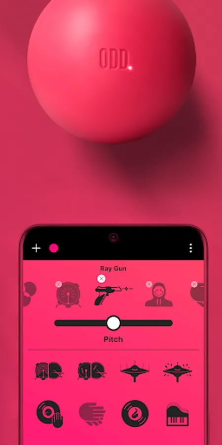 The Mic-in feature allows you to record any type of sound around you and turn it into an instrument that you can play with ODD Ball. Try using the Pitch Slider to transform what you recorded to create something completely unique, and if you dare, you can even record yourself singing on top of your tracks - you might be the next Drake.