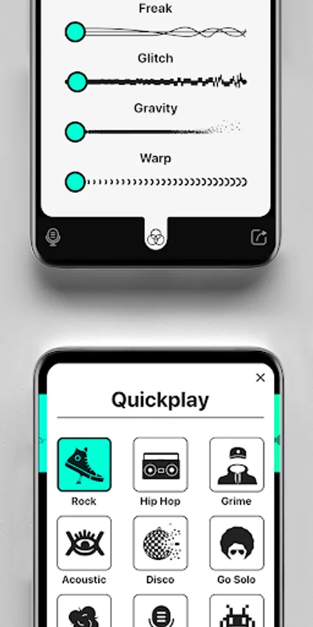 As your tracks build up you might want to add some flavour... some texture. With the built in effects: Space, Freak, Glitch, Gravity and Warp, you can add a unique spin to the composition you have created.