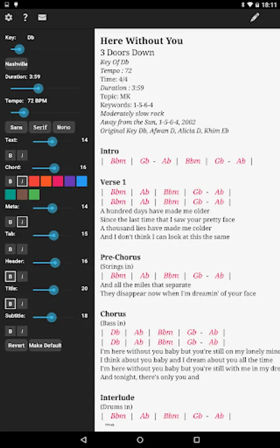 Chordbase is a paperless solution for the gigging musician to display chords and lyrics on Android phones or tablets. Digitise your repertoire today and let us take care of the rest! Chordbase is compatible with charts from OnSong and ChordPro formats.