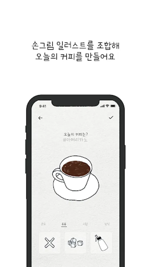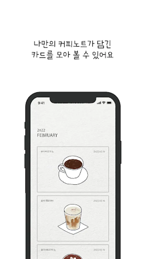 - Organize the date, coffee type, and illustrations in the form of a card.