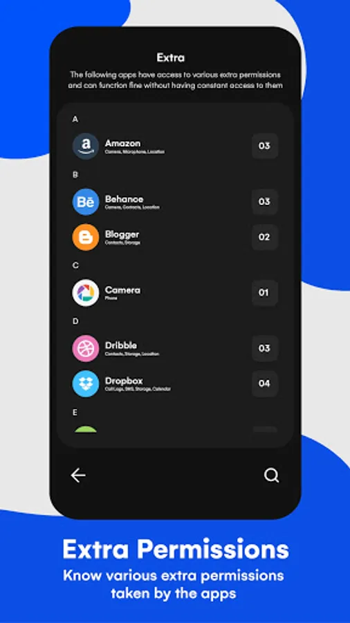 Minimal Categorization: The app divides apps into 3 easy-to-understand, to-the-point categories – Safe, Extra, and Risky – on the basis of the permissions they ask you to grant. These will tell you exactly how much of a risk an application poses to your data.