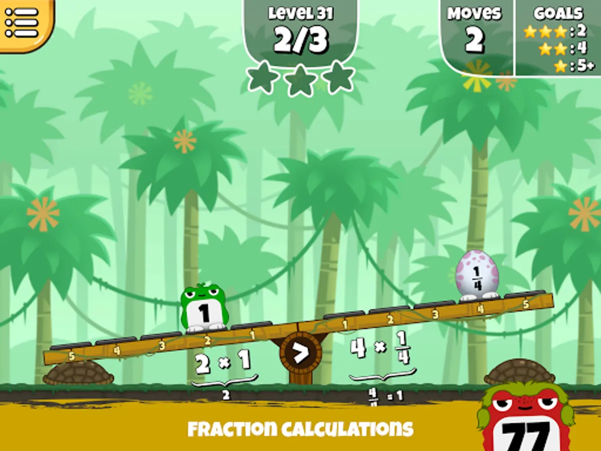 The state of the seesaw in the game is illustrated with mathematical expressions. In that way a range of mathematical concepts are visually explained in an accessible manner. By balancing the seesaw, the goal is also to construct valid mathematical equalities. The player can solve puzzles in an experimental manner and there are often several possible solutions.