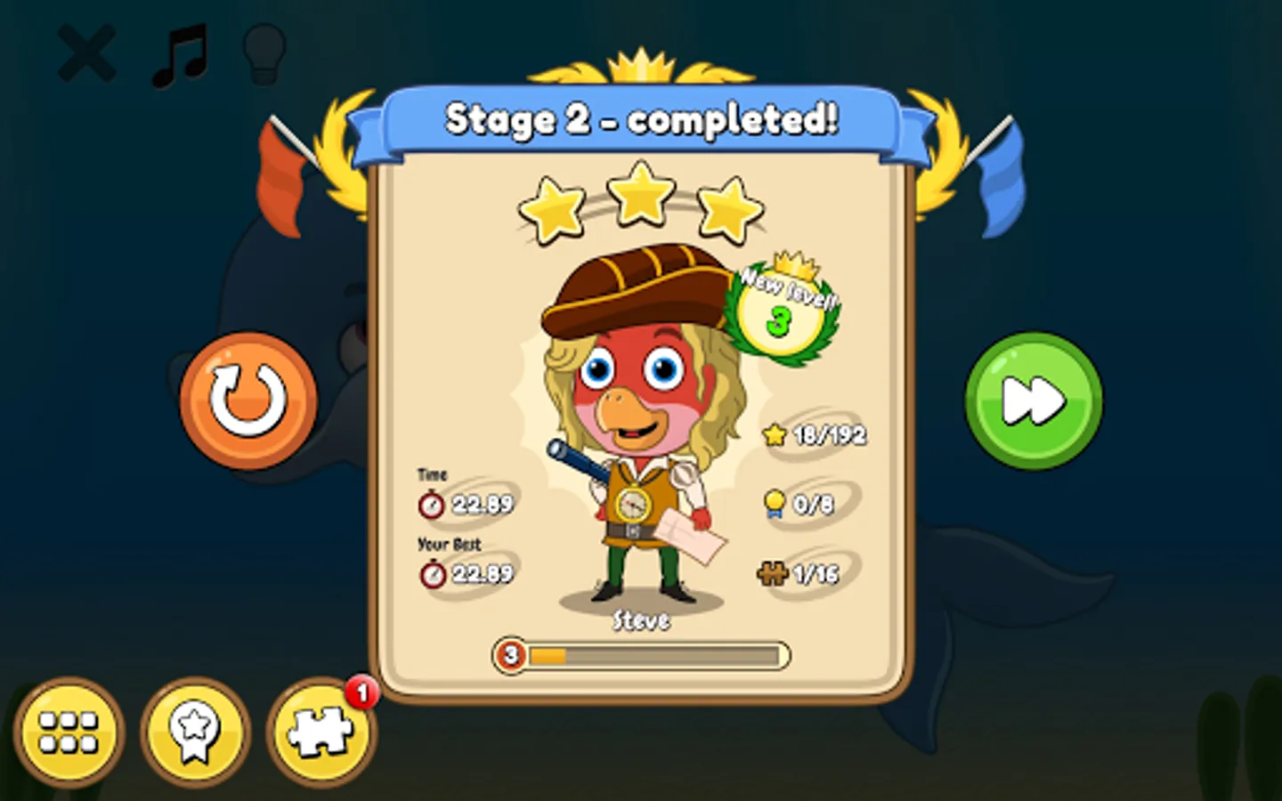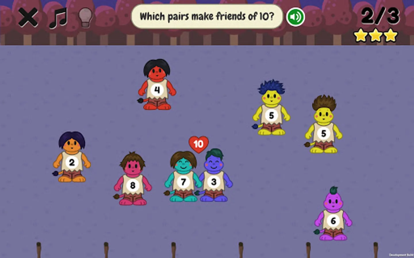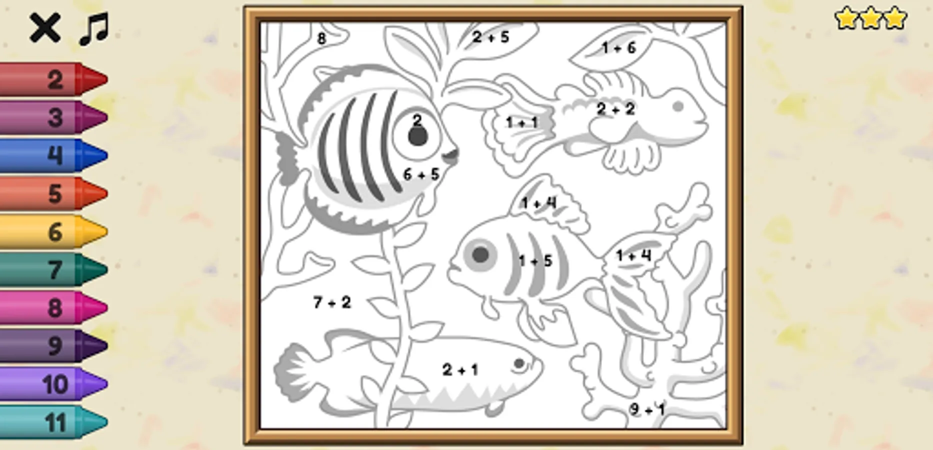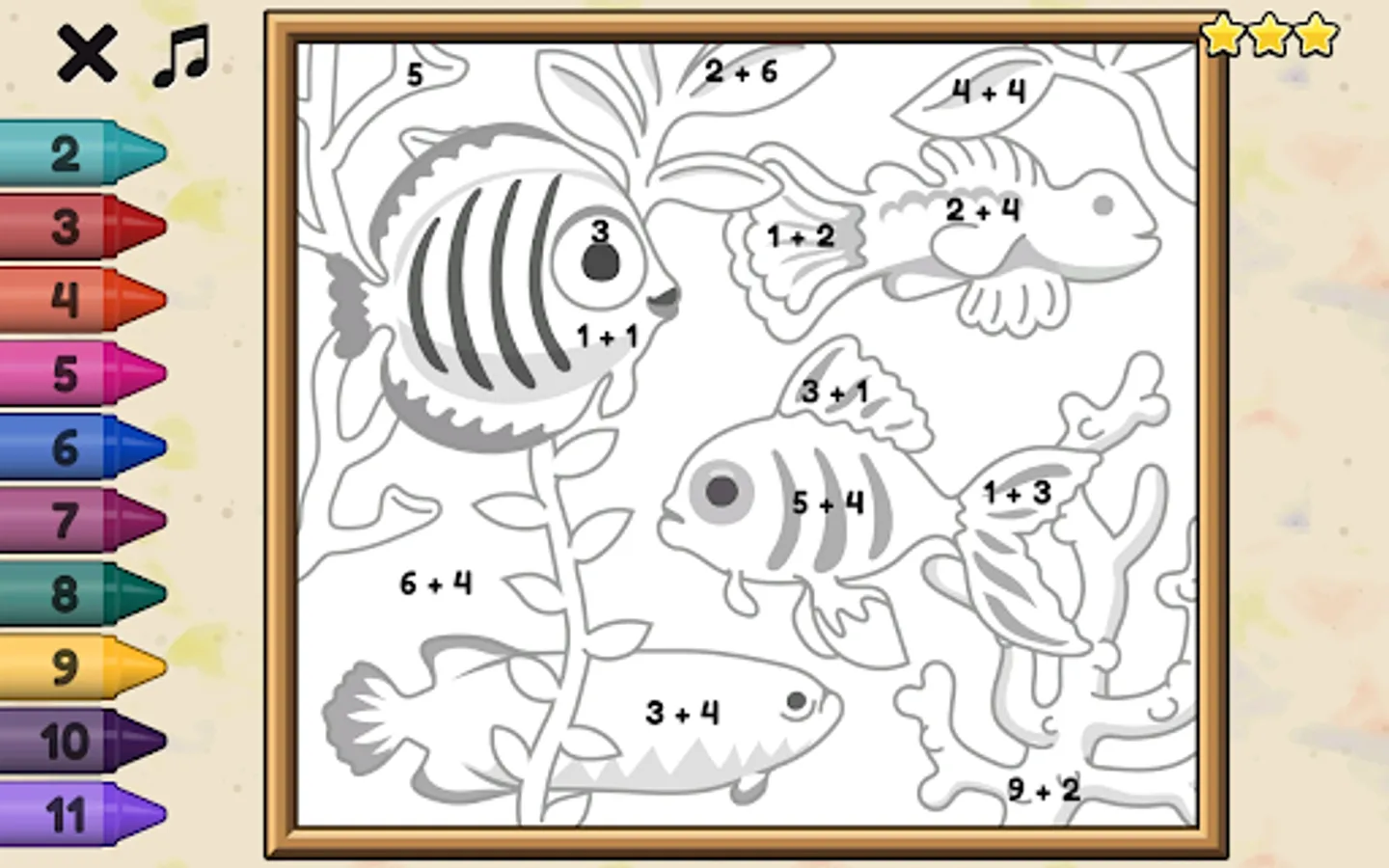 This educational math game contains activities and puzzles for grades K-3. The player chooses a character and travels from island to island to meet challenges such as counting animals in the woods, matching up number friends, drawing dot-to-dot, coloring by numbers, completing patterns and playing a memory matching game. Get stars and level up the character by completing the stages of the game. There are also medals and pieces of a jigsaw puzzle to collect as additional rewards and encouragement for the child.
