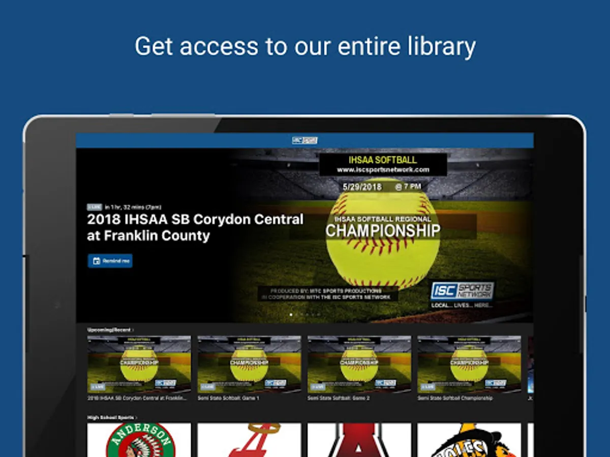 Watch your games your way. Where you want and when you want. The ISC Sports Network will bring live and VOD content from athletic events in Indiana all throughout the year.