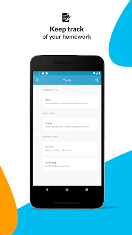 – Easily keep up with lessons and homework via the Text Notebook tab