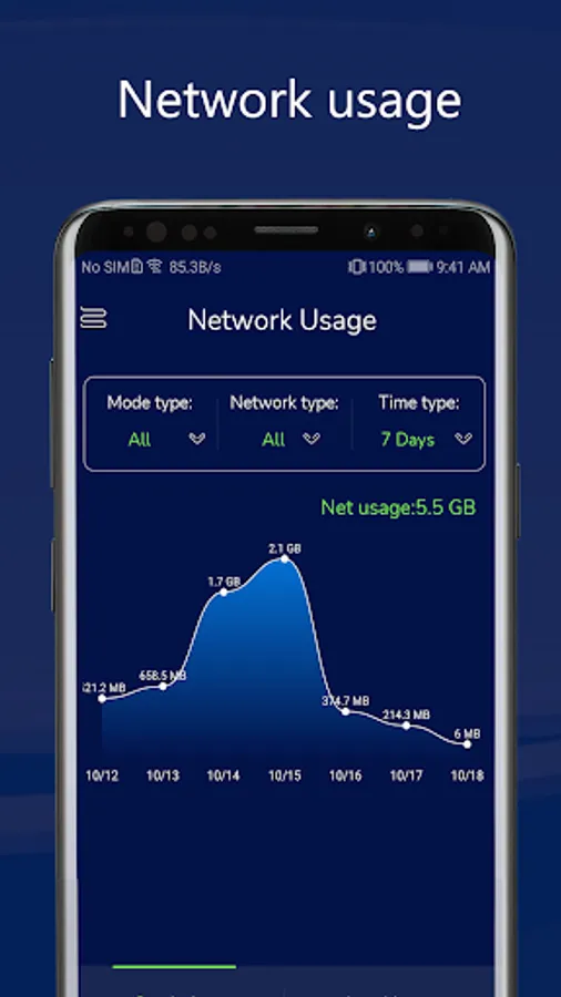 • Network Usage of Entire Mobile/Wi-Fi or Both, Individual App