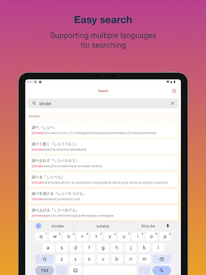 - Supporting multiple languages for searching (Kanji, hiragana, katakana, romaji, English & Thai)