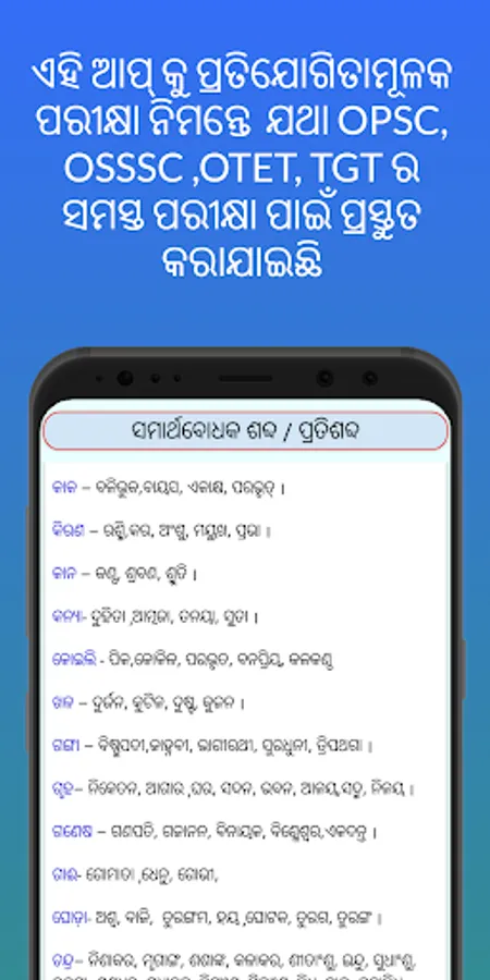 In our Odia Gramma-Book & Test series app is the one-stop solution for all government job aspirants of Odisha and it is developed by “Down To Earth” for providing Knowledge related to Odia grammar for different competitive examinations such as all exams of OPSC, OSSSC and OSSC like OPSC(ASO),RI, ARI, Amin, SI , OTET, OSSTET, OAVS ,CTET, KVS, and other Clerical exams of Odisha, and very useful for school going students and for their examinations also.
