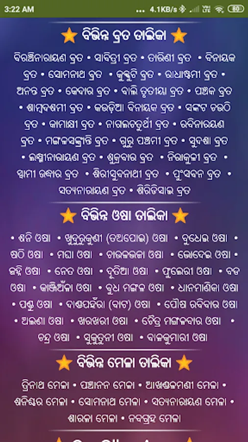 One app to Read and Download All Odia Osha, Brata, Mela, Puja Books. You can also check legends (Mahatmya and Kimbadanti) behind every brata, osha and mela.