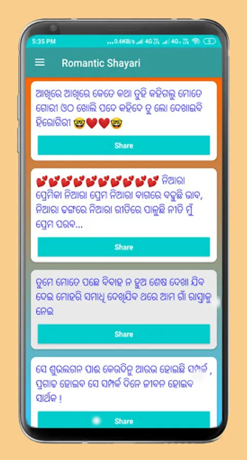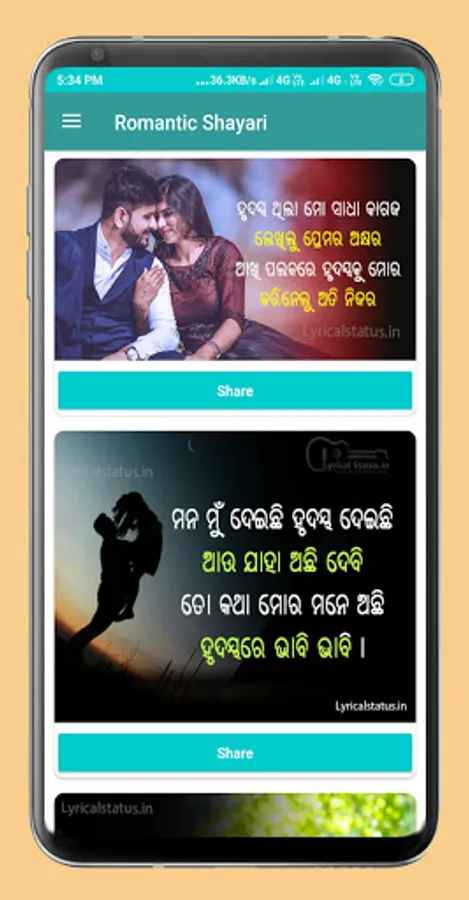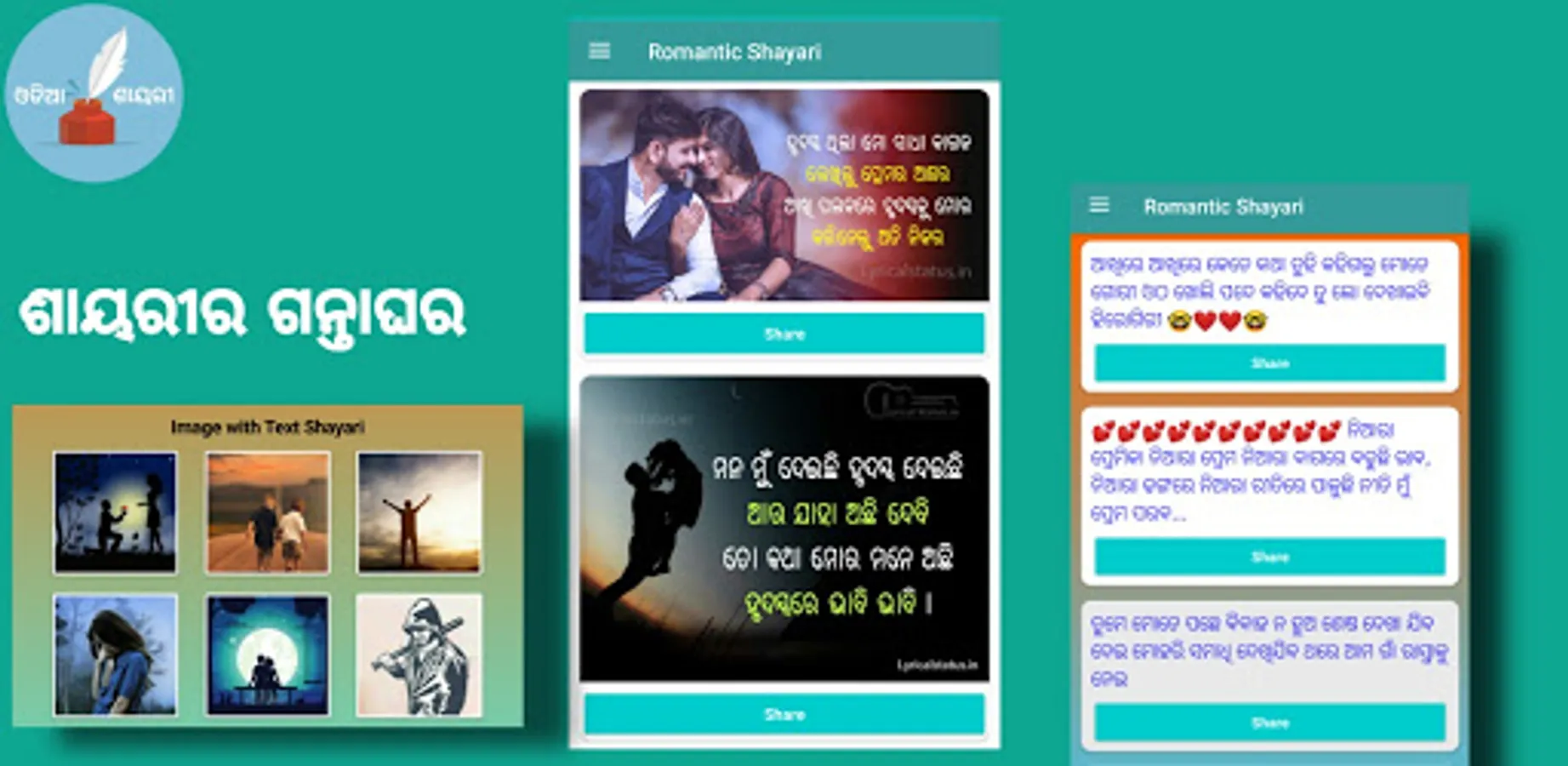 Odia Shayari app basically provides image shayari and text quotes. We have a large collection of different categories. You can find daily new & eye-catching emotional, love, sad & inspirational status material.