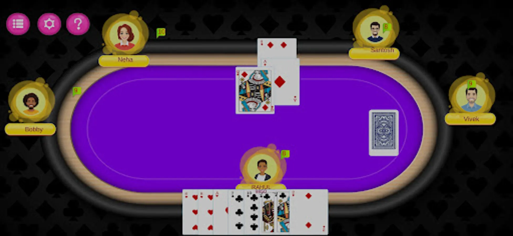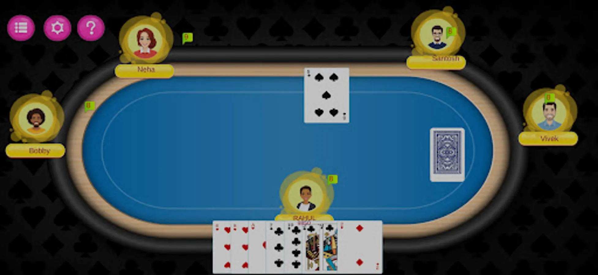 - You can play this online Bhabhi Multiplayer card game with 5 players or create a new private table with 5 players too.