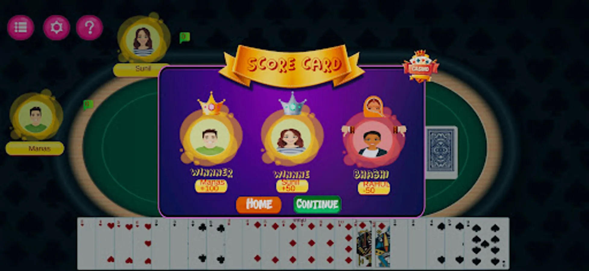 - online Bhabhi Thulla card game offers the strategy elements of Mindi card game, getaway, Bhabi Thulla, any many more and luck elements of trick-tacking games, Daily reward wheel with crazy graphics.