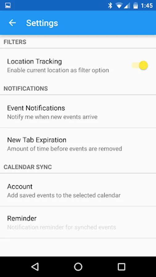 ACCESS_COARSE_LOCATION - Used to find events near device's location.