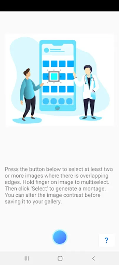 Designed for smartphone ophthalmoscope and other retinal fundus photographs. When photographing the retina often only portions of the retina can be photographed at one time. Therefore, to get a complete image of the retina these retinal images must be stitched together. oDocs Montage performs this task using images from your phones gallery. Now uses oDocs Eye Cares enhanced circular gradient masking stitching algorithm enhanced for retinal images. Just click blue circular button to select the retinal images from your gallery, then click 'Finished' once you've chosen them.