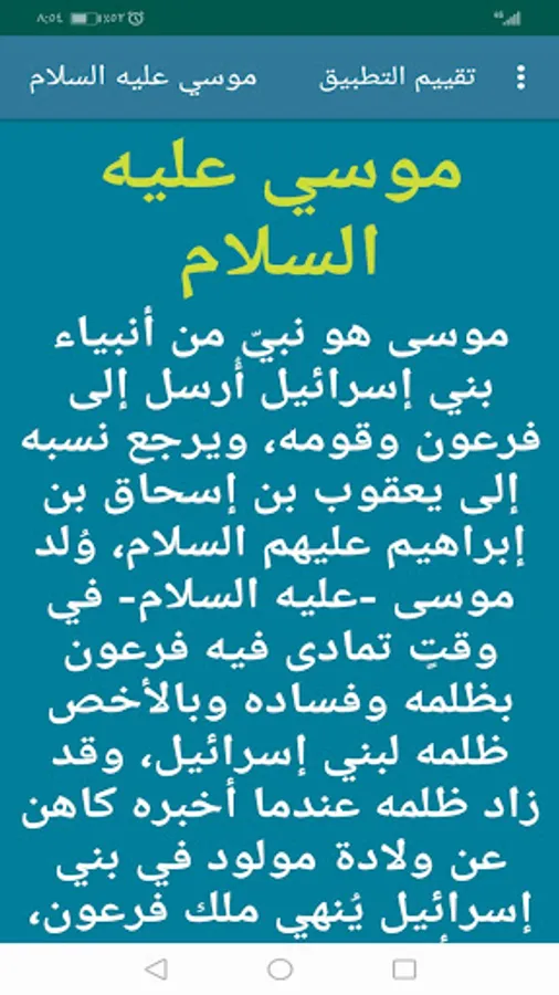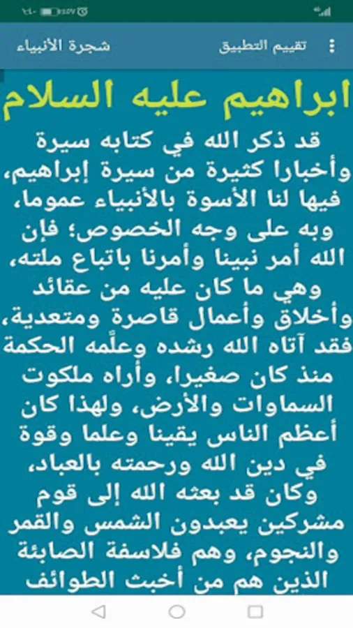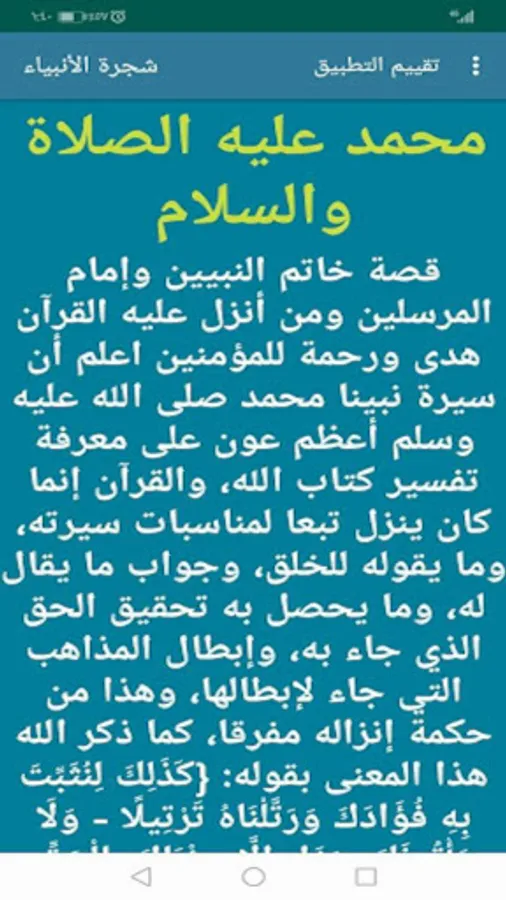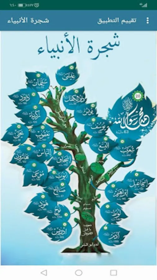 Tree of the Prophets is an application that contains the stories of the prophets where the application is a picture of the tree of the prophets and each Prophet name written on the paper of this tree and when pressed the name of the Prophet moves the application to the story of this prophet and in this application also lessons learned from each story of the prophets.
