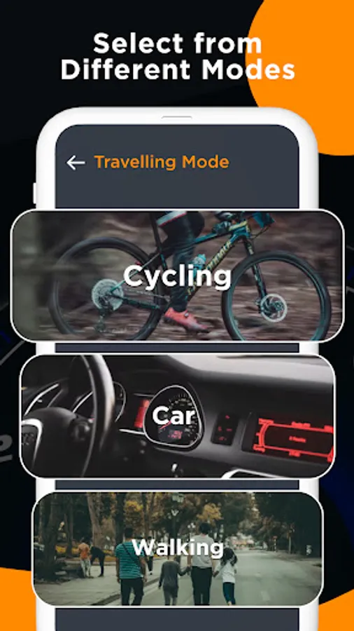 ★ Modes (car/bike/walking) you can change the mode accordingly, and track your speed and distance accurately on GPS Speedometer - Mileage Tracker Odometer.