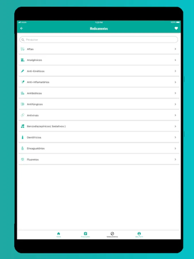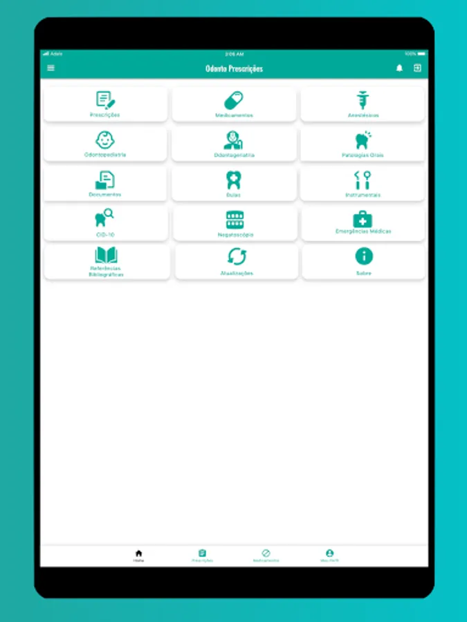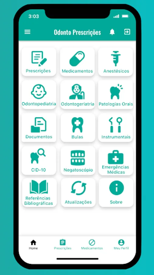 The application of the Dentist and Dental Student, Dental Prescriptions, Most Used Medicines, Oral Pathologies, ICD-10 Dentistry, Medical Emergencies, Documents, Package Inserts, Instruments.