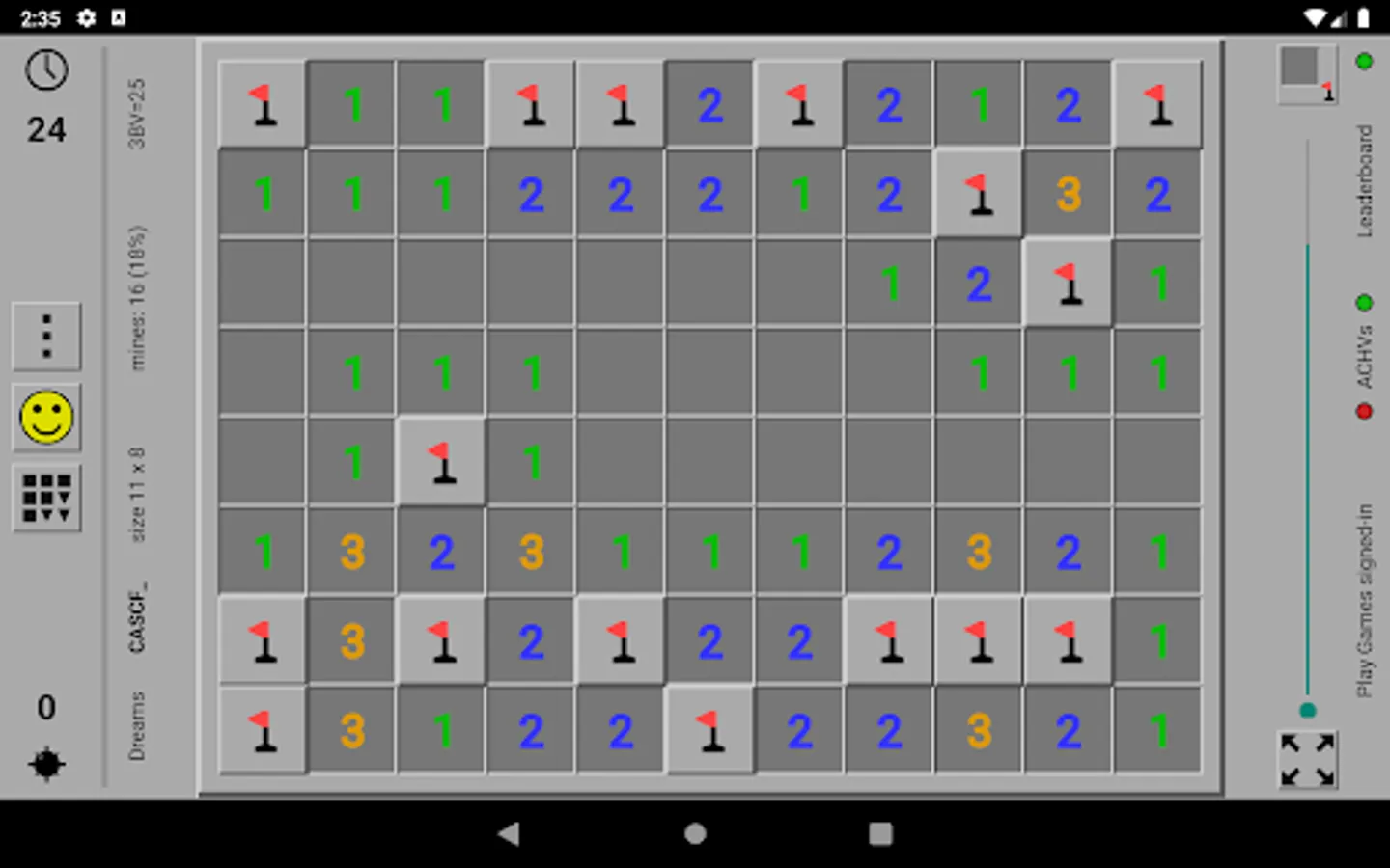 If it is not possible to make another logical safe step, the application will allow the player to step on the logically not defined tile, ensuring that the player does not step on the mine. Any minesweeper game is completely logically solvable to the end without having to rely on chance.