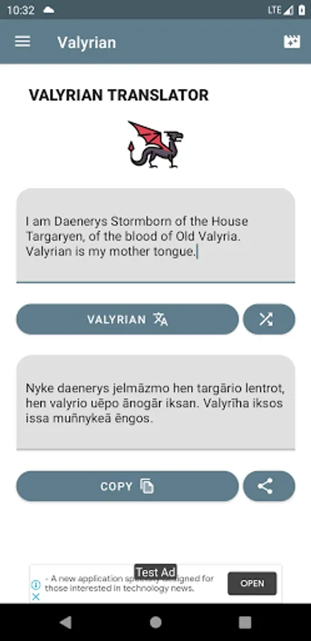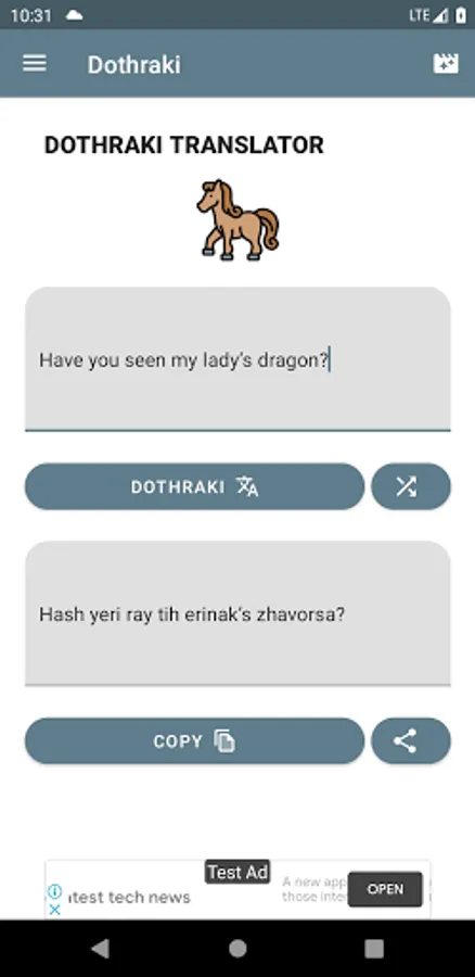 This app can convert English to fictional languages from movies and tv shows such as Dothraki and Valyrian from GOT, Avatar Na'vi and more.