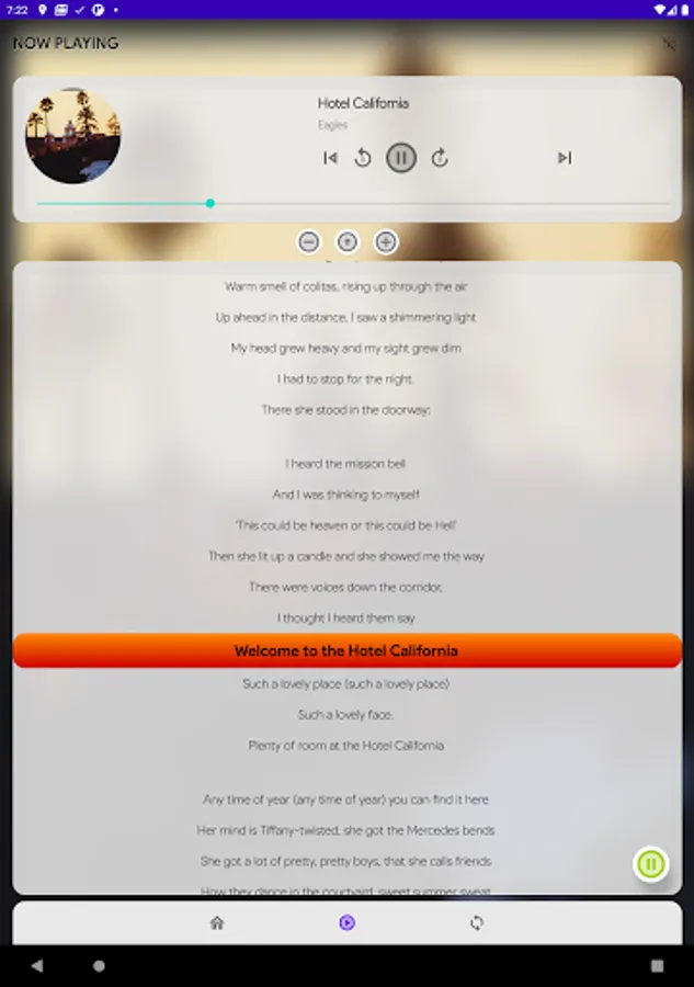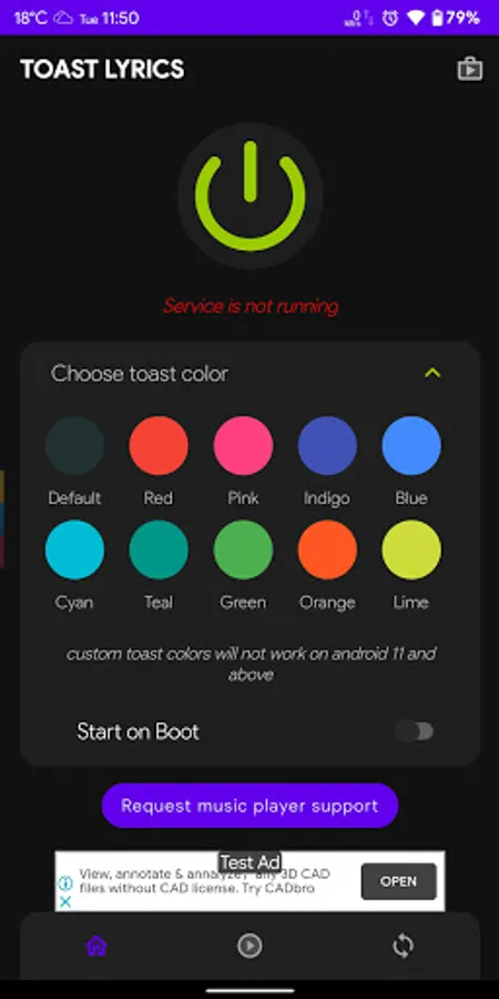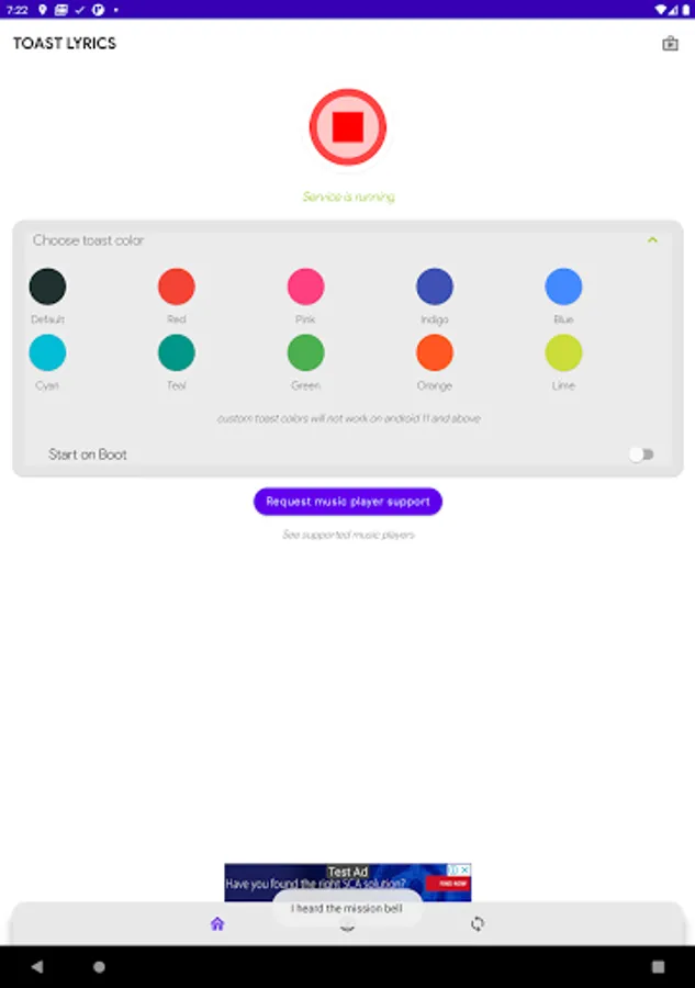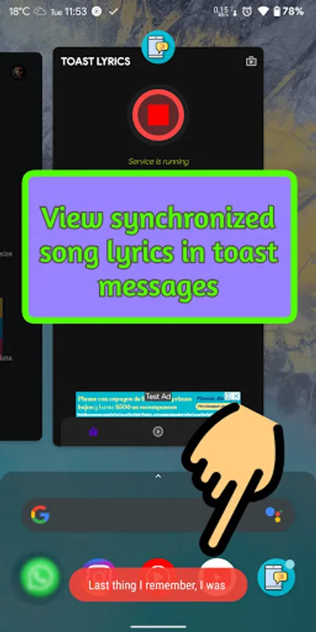 It shows synchronized song lyrics as toast messages.