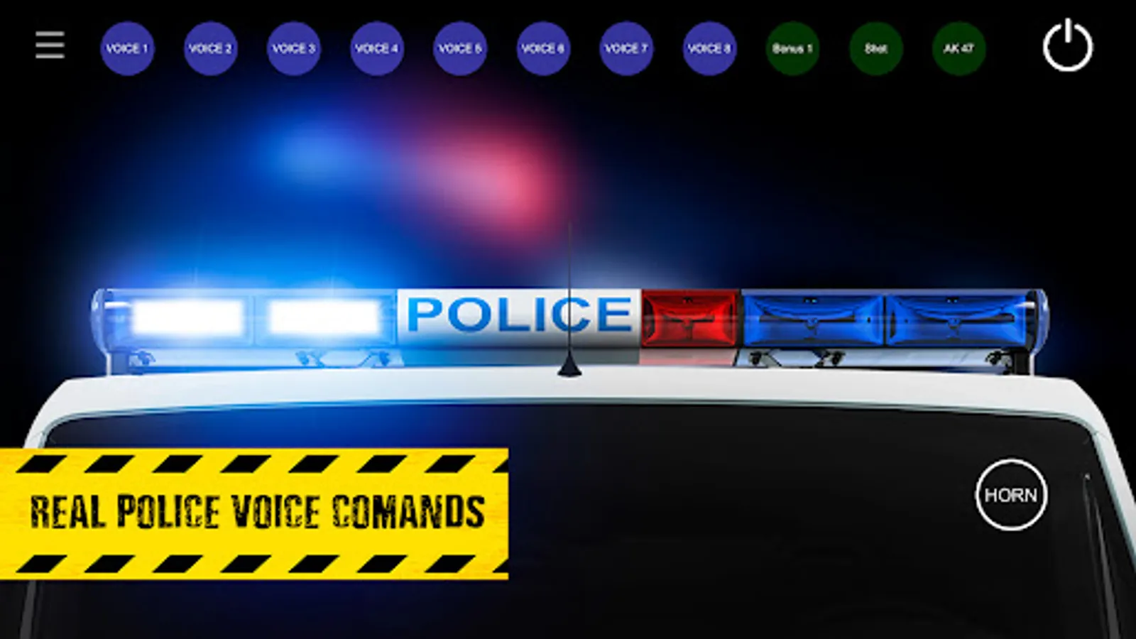 prank game Siren police flasher sound - simulator of sound special signals. With this application, you can turn your smartphone into one of the machines with special permissions. You can play with friends in police games. You can joke and frighten scammers and bandits, as if the police car is nearby. Do you like games about the police? Do you like the police siren? Then the game siren sounds dps police flasher sound simulator for you. Turn on the siren flasher sound - clean the city of the bandits. The game has various official vehicles, with different sound sirens and flashing lights. The game made realistic animation and sound: a police car DPS, a fire engine, an ambulance, a car with an orange beacon of special equipment, a car fbi. Different lighting modes betray a realistic light effect. To include police lights or a flashing machine beacon - click on the siren and again to turn it off. You can put the phone with flashing lights on any car and thereby turning it into a special car, with special lights.