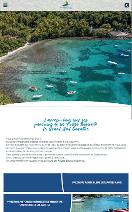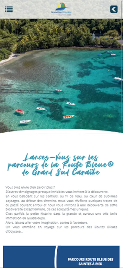 All of South Basse-Terre and Les Saintes in your pocket. The application that allows you to use your Smartphone as a roaming guide on the Blue Routes.