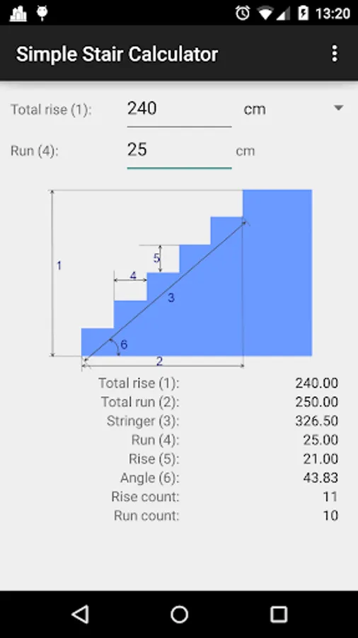 With Simple Stair Calculator you can calculate simple wooden stairs for small home projects.