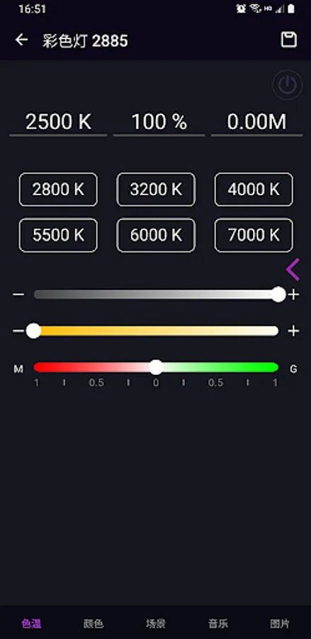 DeSal Lite+ is wirelessly connected to lighting fixtures via Bluetooth, and can control multiple lighting fixtures individually or in groups to achieve lighting control of the brightness, color temperature, HSI, RGB, multiple scene modes, as well as preset color effect. (The above lighting control features need to be supported by the related lighting fixtures)
