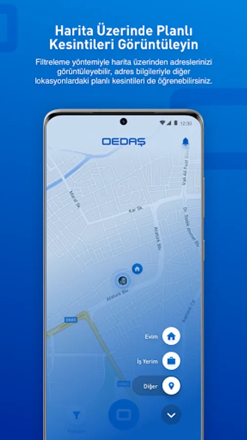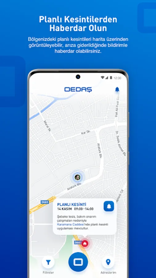 With the OEDAŞ 186 application, which allows us to provide you with a higher quality service, you can notify us of your breakdown requests, follow up your requests, and view the planned outages in your region on the map.