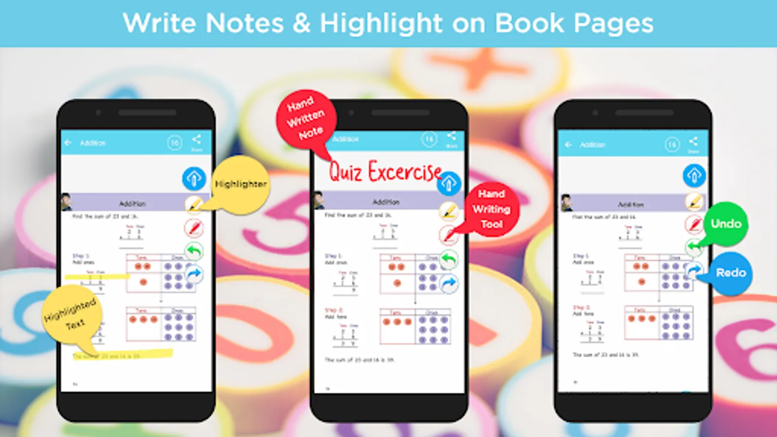Easy Math for kids App has several important features including zoom in the book pages for better viewing and readability, underline or mark the content with a pen and also highlight the important content for future reference, move forward or backward easier than a paper book, resume from where you left in 1-click and lastly save your edited pages & share with classmates and teachers. Using the smart book app eliminates the risk of losing or damaging paper-based hard copies. Any kind of Community around the Globe can get benefit from math smart learning app.