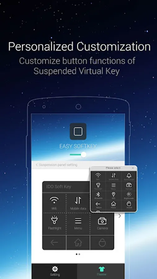 This touch floating panel also has many beautiful theme,make your Android phone beautiful!